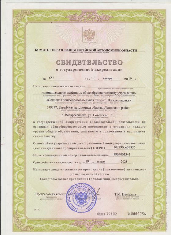 Адрес МКОУ ООШ с.Воскресеновка: 679377 ЕАО Ленинский район с.Воскресеновка ул.Советская 11 Б
